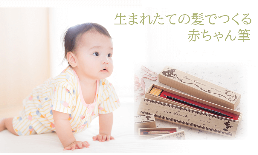 赤ちゃんの髪の毛で作る赤ちゃん筆の注文を承っております。かわいい赤ちゃんの誕生を記念した、一生の思い出の品です。詳しくは店頭、またはお電話にてご確認ください。